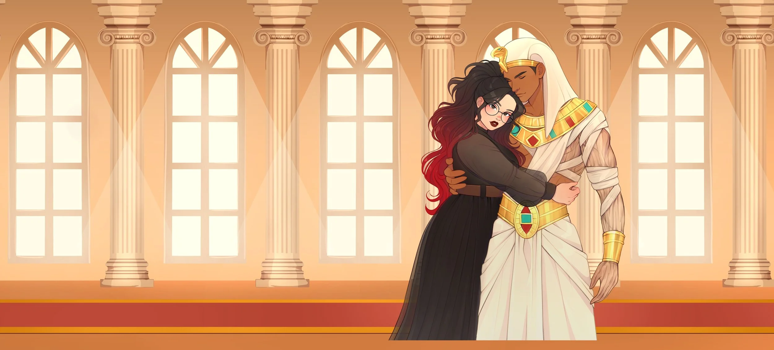 Character artwork for Bewitched by the Mummy King by Vivian Valentin Art and the hardcover design by Saint Jupiter